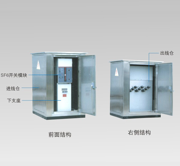 5、負(fù)荷開關(guān)的操作機構(gòu)位于操作驅(qū)動室內(nèi),電纜隔室內(nèi)有電纜樁線及電纜終端,電纜終端與負(fù)荷開關(guān)連接;
