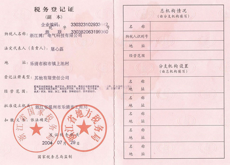 • Tax Registration Certificate